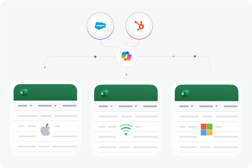 Real-time co-authoring, shared workbooks, and integrated Slack and email notifications. Your team can collaborate on Salesforce and Hubspot data just like any other Microsoft 365 document—with version control, co-authoring, and all the collaboration features you depend on.