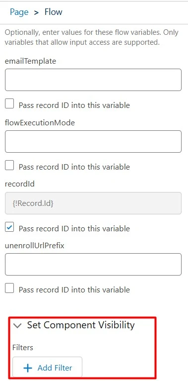 Click on the section, and configure its visibility settings. Use the “Set Component Visibility” option to add conditional filters based on criteria such as field values, user attributes, or record types.