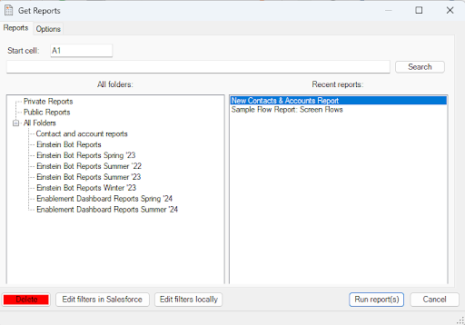 Delete reports directly from the XL-Connector dialog.