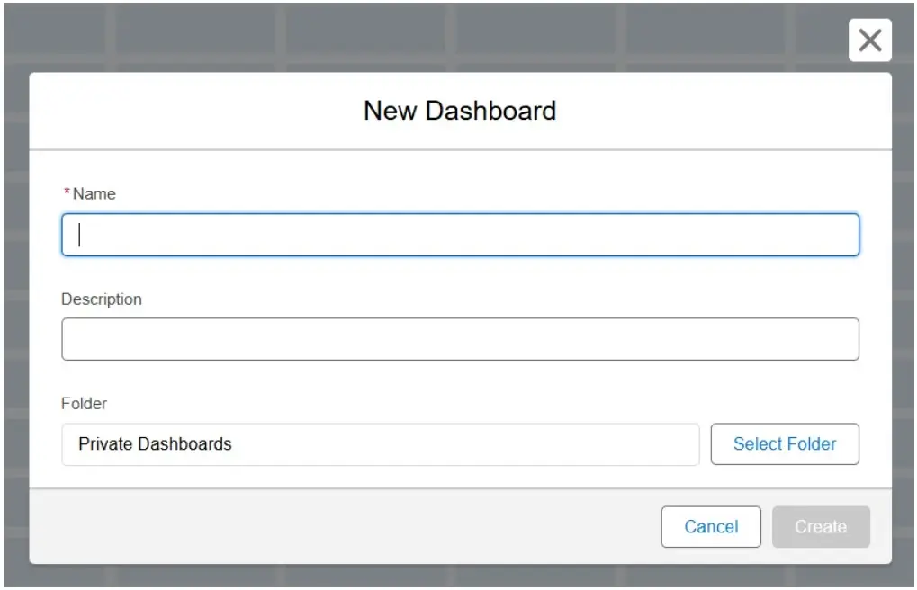 - Enter a name and description for your dashboard.