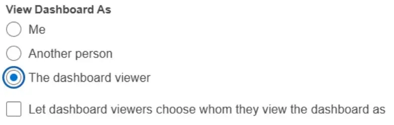 - Choose “The dashboard viewer” as the running user to make the dashboard dynamic.