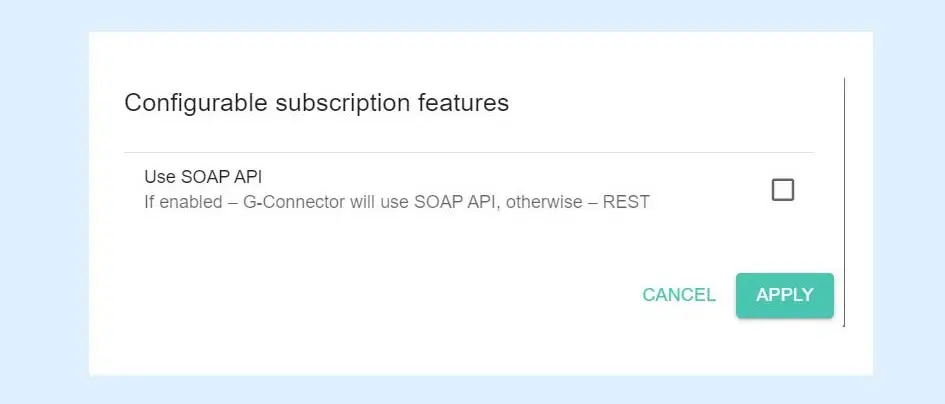 G-Connector can work either through Salesforce Bulk or SOAP API, adjustable on the license level or through settings. SOAP API support makes it possible for the tool to work with Salesforce Professional and Group editions licenses.
