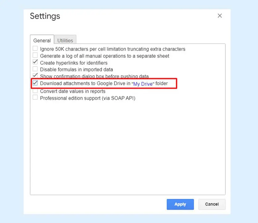 G-Connector facilitates effortless syncing of information, streamlining workflows and enhancing productivity. G-Connector lets users pull files from Salesforce to a specified Google Drive folder directly from the spreadsheet, or to upload files saved in Google Drive to Salesforce as attachments. This can be done by creating a query to pull attachments or inserting attachment records. No need to move outside Google Sheets anymore!