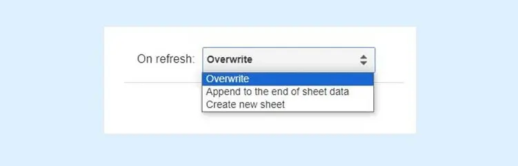 - Overwrite (similar to Google Data Connector)