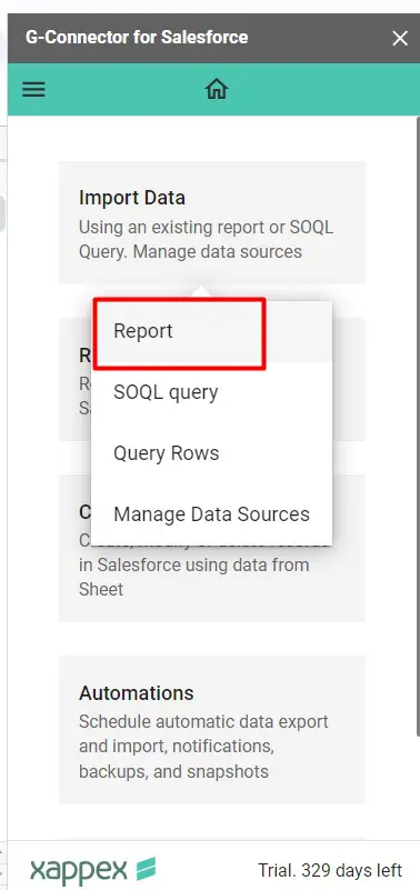 Any report that you’ve created in your Salesforce environment is instantly available in any of your Google Spreadsheets with G-Connector. Let’s take a look at 5 easy steps to sync your reports to Google Sheets:
