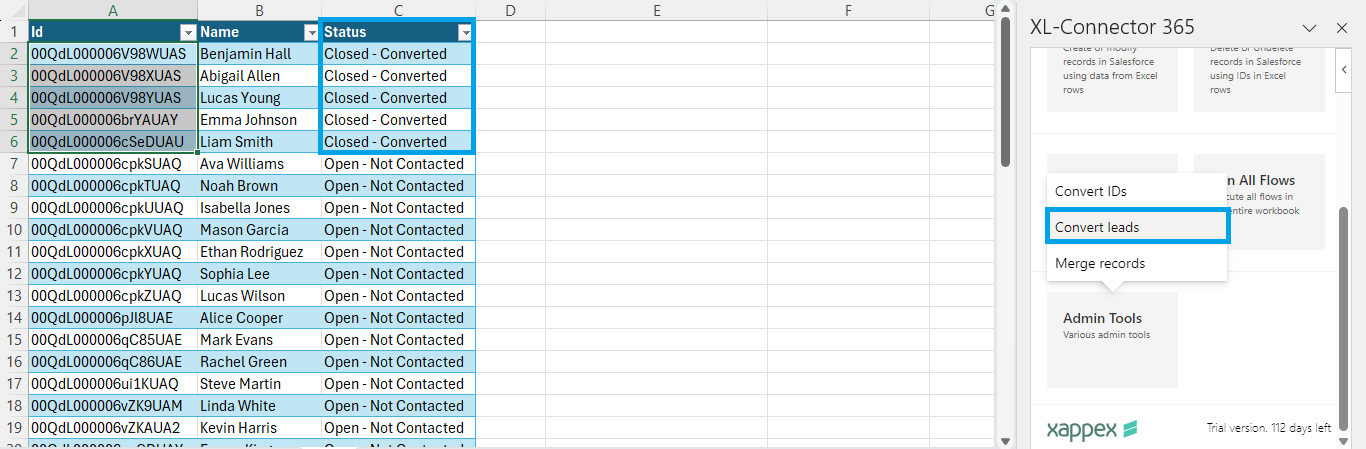 To convert leads in bulk, install XL-Connector 365 if you haven’t already. Then, follow the steps below to get started.