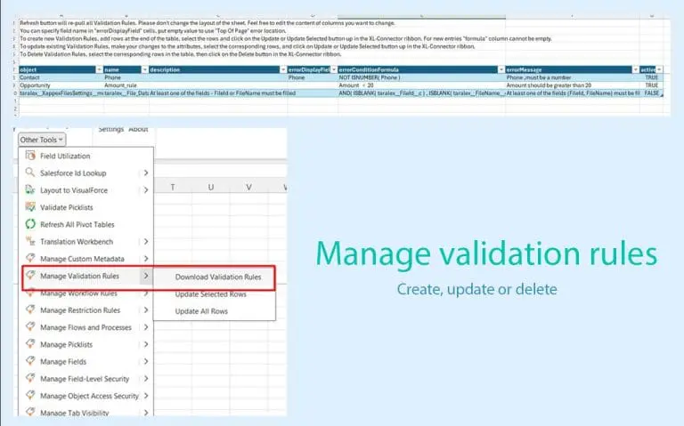 - Manage Validation Rules: Create, update or delete validation rules right from your spreadsheet.