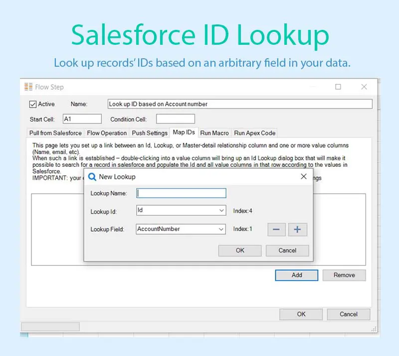 - Salesforce ID Lookup: Look up records’ IDs based on an arbitrary field in your data.