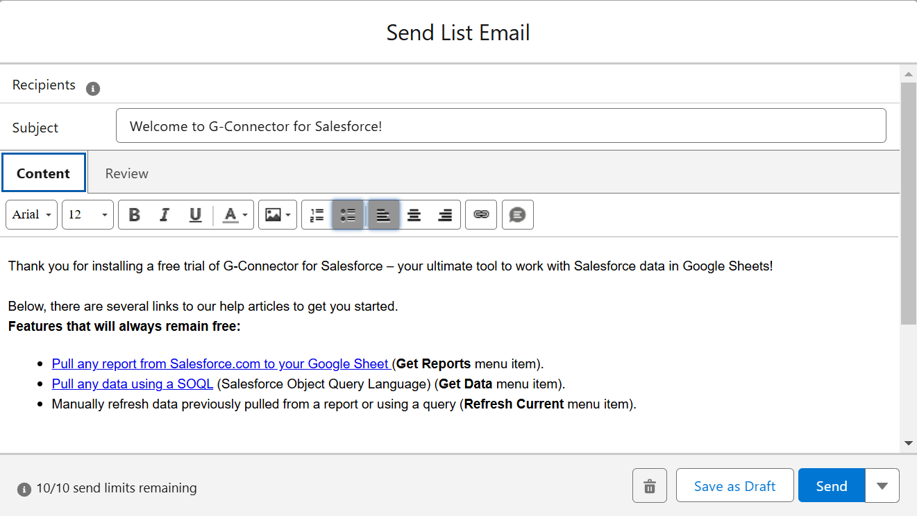 However, this method has limitations, such as lower daily recipient limits and fewer customization options. In Lightning, List Email replaces the legacy mass email feature.