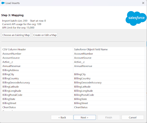 - Match column headers with Salesforce field names.