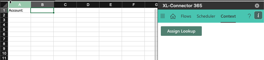 To assign a lookup to any cell, select it in your worksheet and click on the Context tab of the XL-Connector 365 plug-in: