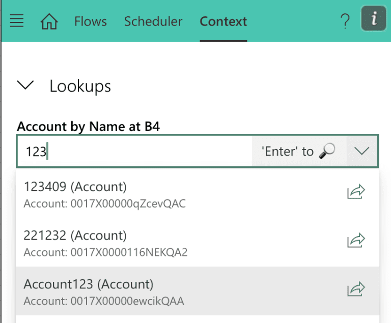 If the Assign Lookup button is clicked when the selection is inside of a data table in the worksheet – the Lookup will get assigned to the whole data table column. You will also be able to specify the column to hold record Ids, so when a lookup cell is populated, the Id column in the same data table row will get populated as well.