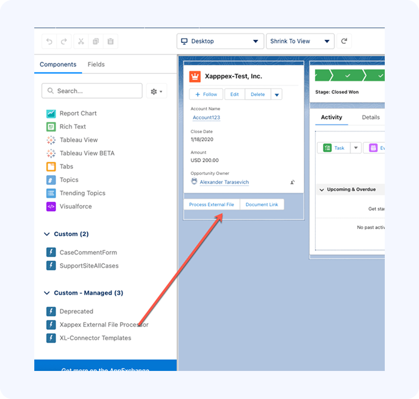 To do that, in Lightning Page editor, locate Xappex External File Processor component and drag it to your page layout: