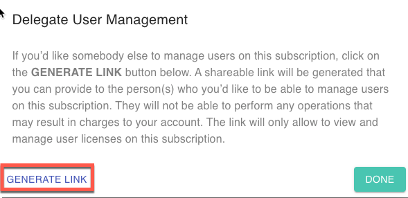 Copy the generated link and send it to the person that you want to be able to manage the users on your subscription: