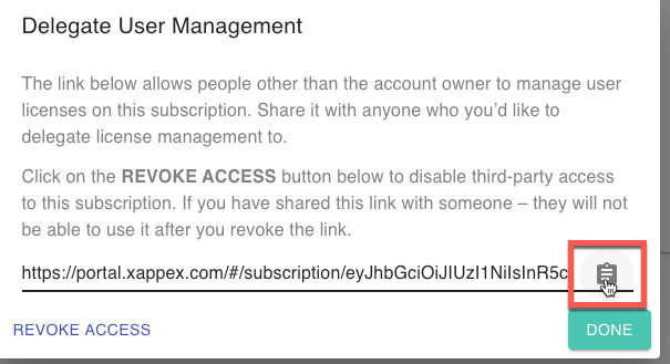 To share the ability to manage your Xappex licenses with someone else than the account owner, the account owner will need to generate the management link and share it with the corresponding person.