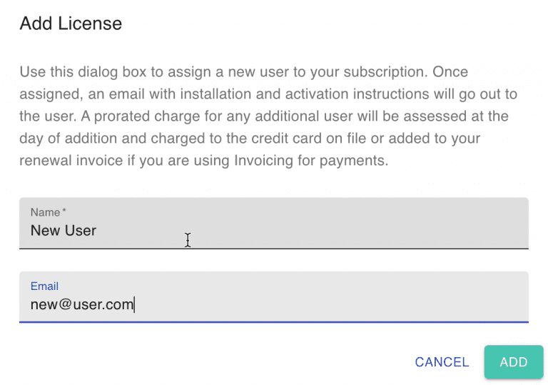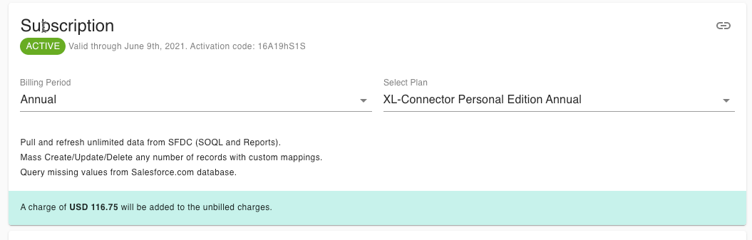 If no email is specified, anyone with the subscription activation code will be able to activate this new license by clicking on Settings -> License -> Enter a different activation code in the XL-Connector ribbon tab in Excel and specifying the subscription activation code. - An estimation will be displayed of for this addition: