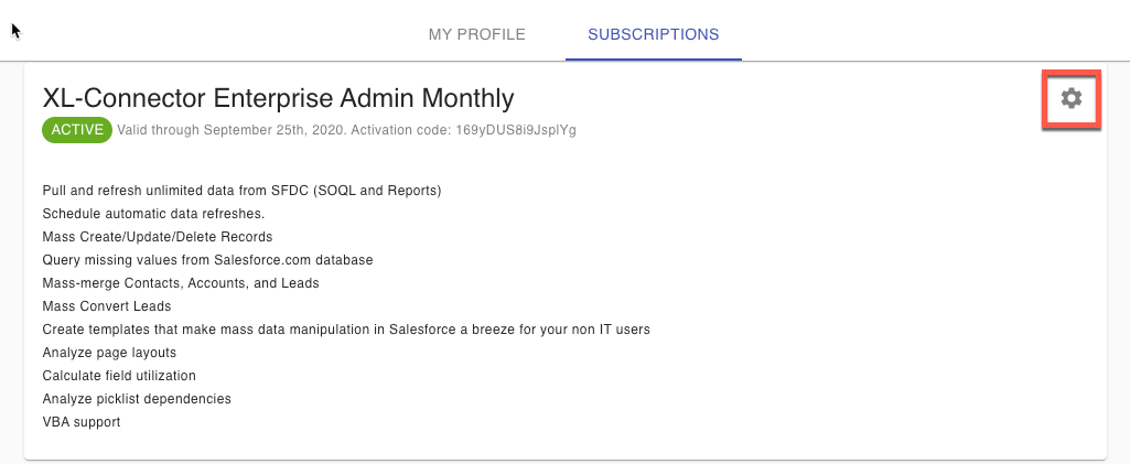 - Click on the Subscriptions tab and then on the gear icon next to the corresponding subscription to modify it: