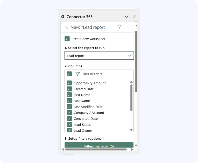 With XL-Connector 365, you can run your Salesforce reports and put them directly into an Excel spreadsheet.