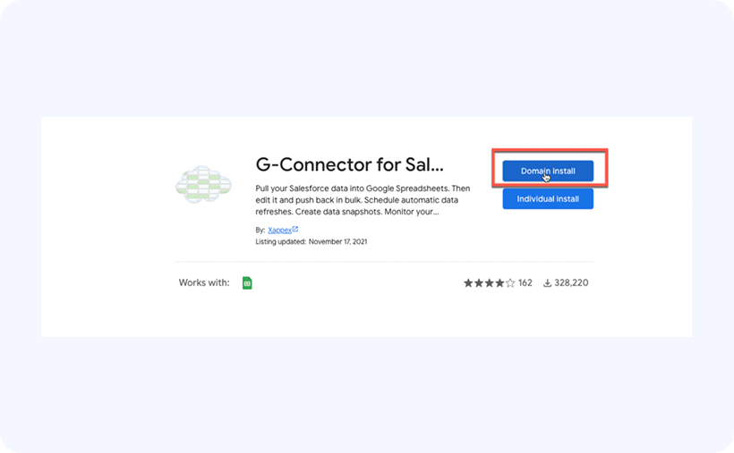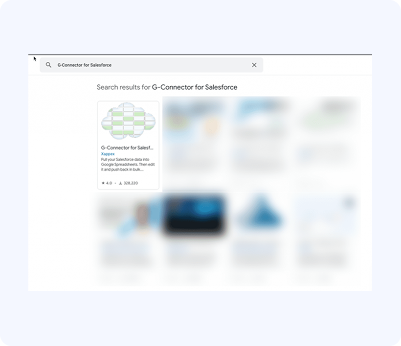 Search for G-Connector for Salesforce and once it’s found, click on it: