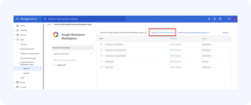 In the left-hand navigation pane, go to Apps -> Google Workspace Marketplace Apps -> Apps list