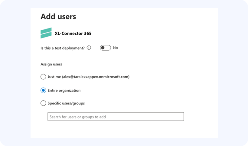 Now you’ll need to select whether to install the add-in for yourself, specific users or entire organization: