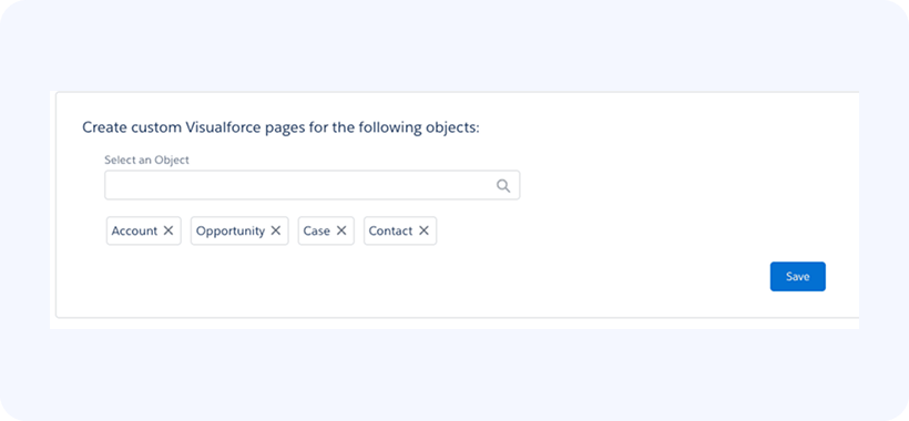 Click Save in the page above to generate the VisualForce page(s) for the selected objects.