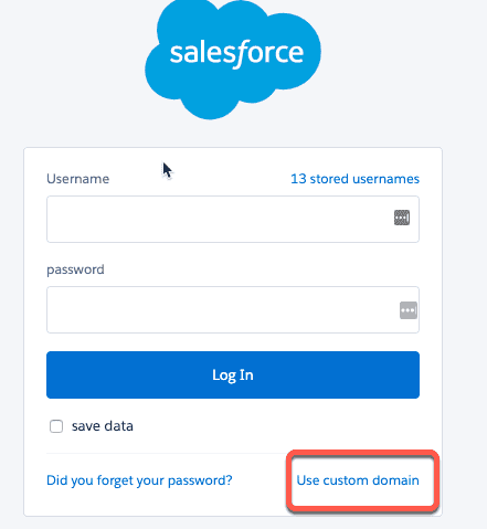 Please note: do not type in your custom domain URL into the drop-down box. Always use http://login.salesforce.com‘ for production or ‘http://test.salesforce.com‘ for sandboxes.