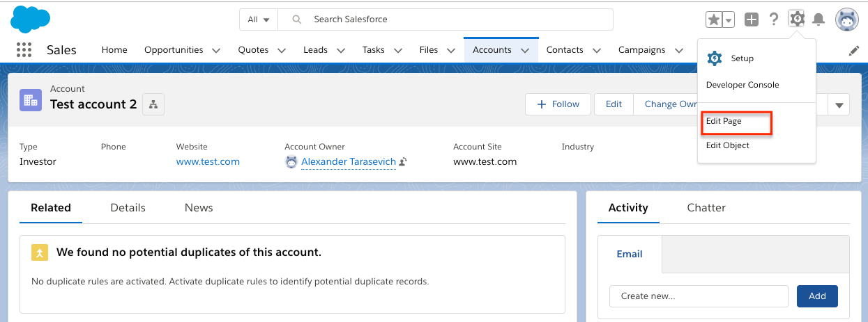 - Click on Edit Page on any Lightning Page: