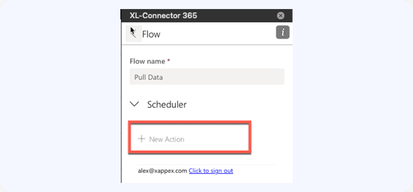 2. In the subsequent screen, under Scheduler, click on New Action: