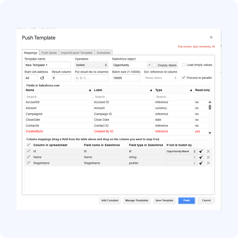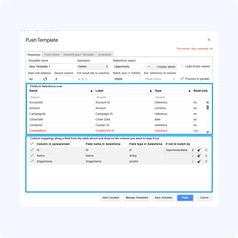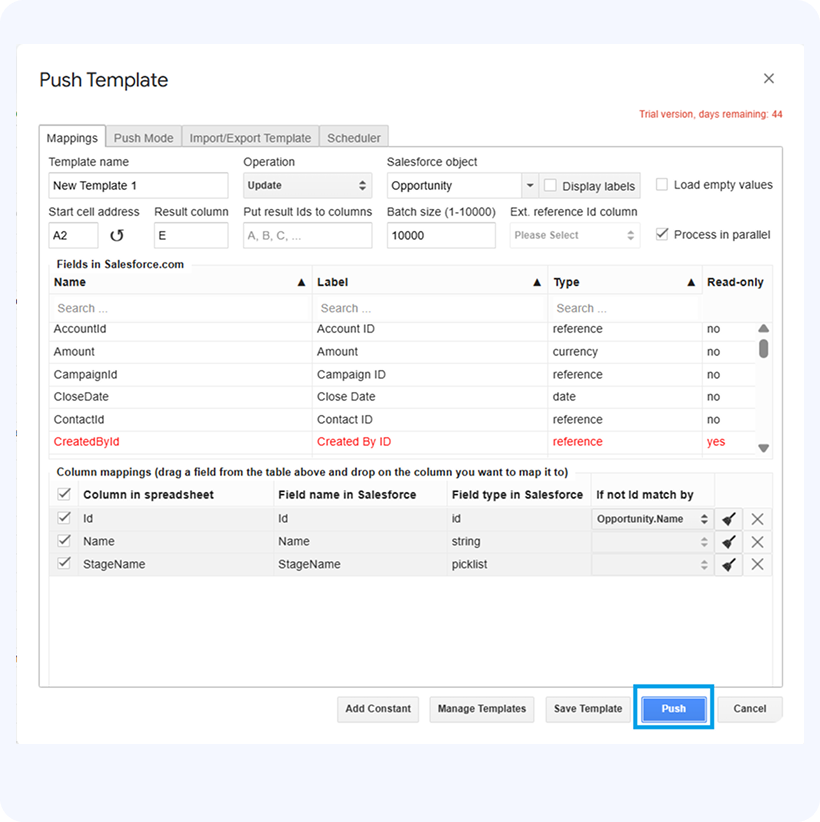 After you’ve verified your mappings and re-mapped if necessary, you need to do is click Push, and all the Opportunity records will get updated.