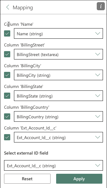 In our demo scenario, Accounts need to be synchronized with an external system, and therefore the Account object has a field named Ext. Account Id.