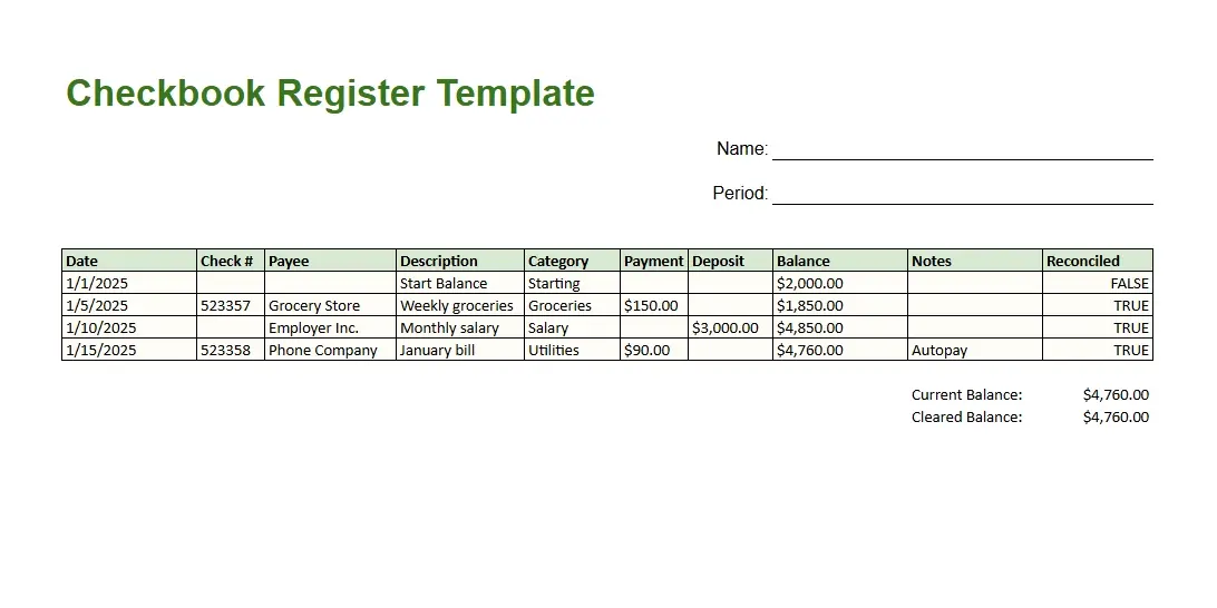 Whether you're monitoring a personal account, managing a household budget, or overseeing a small business fund, this checkbook register ensures accuracy and helps reduce the risk of overdrawing your account. Fully customizable and compatible with most versions of Microsoft Excel or Google Sheets, this tool is essential for managing your cash flow effectively.