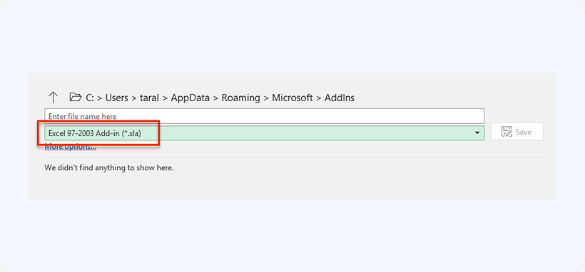 Now if you want this macro to appear in all documents that you open on this computer click on File -> Save As and save the document as an Excel Add-In: