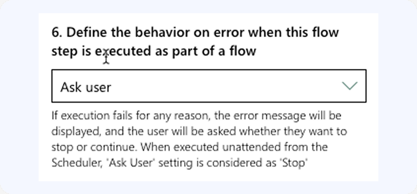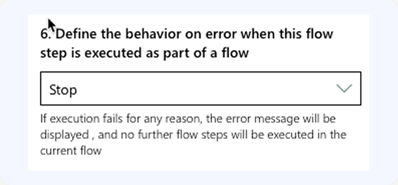 The following setting determines the behavior of the flow step if the operation returns at least one error: